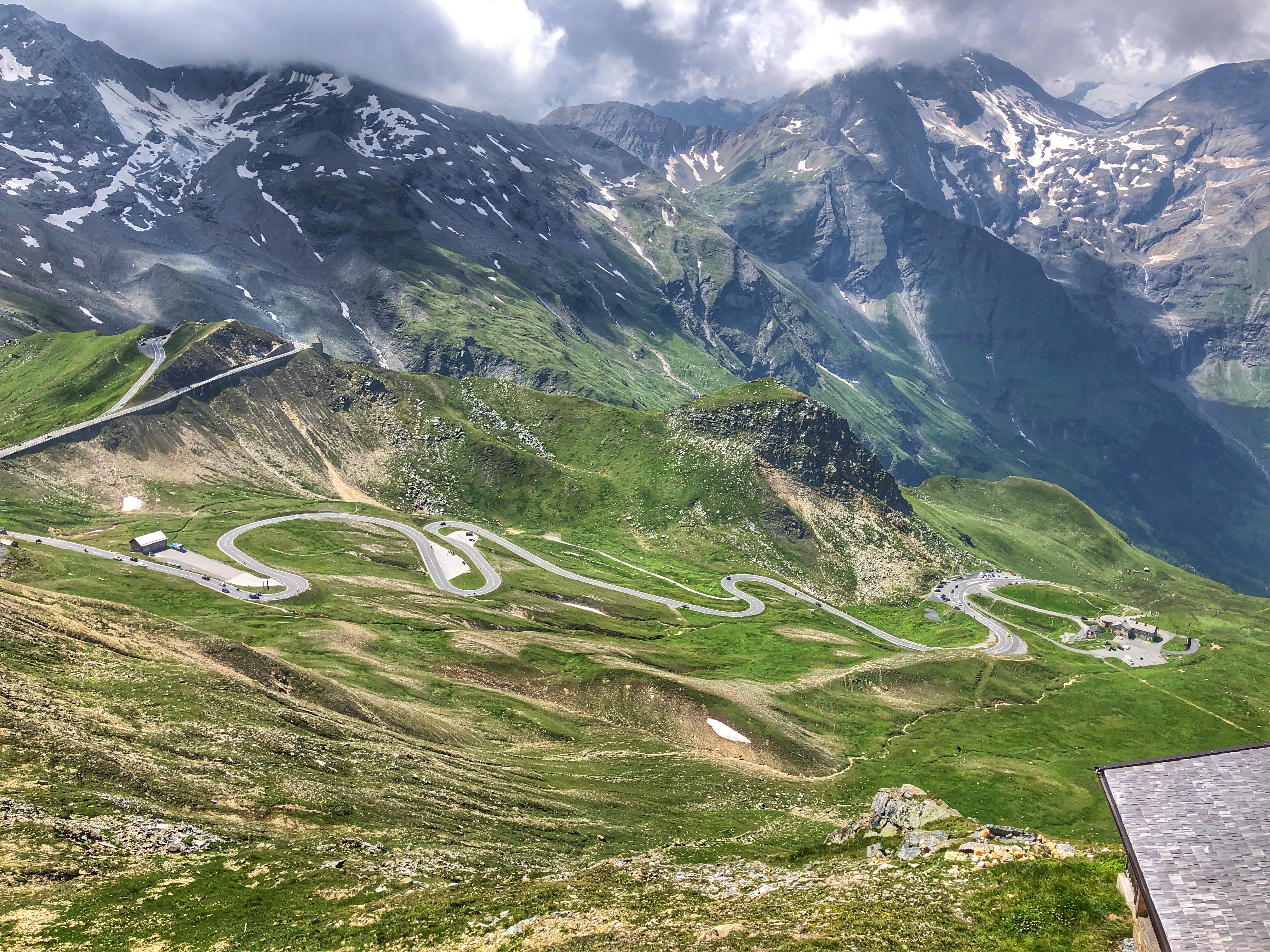 On the main road up to the Edelweißspitze turn off, there are 14 numbered switchbacks. Once you reach the obvious turnoff, turn left and climb 6 numbered switchbacks of amazing cobblestone road to the Edelweißspitze. Up here there a wonderful views of the mountains (although the Großglockner itself is barely visible), and there’s a restaurant where we relaxed with a coffee and strudel.