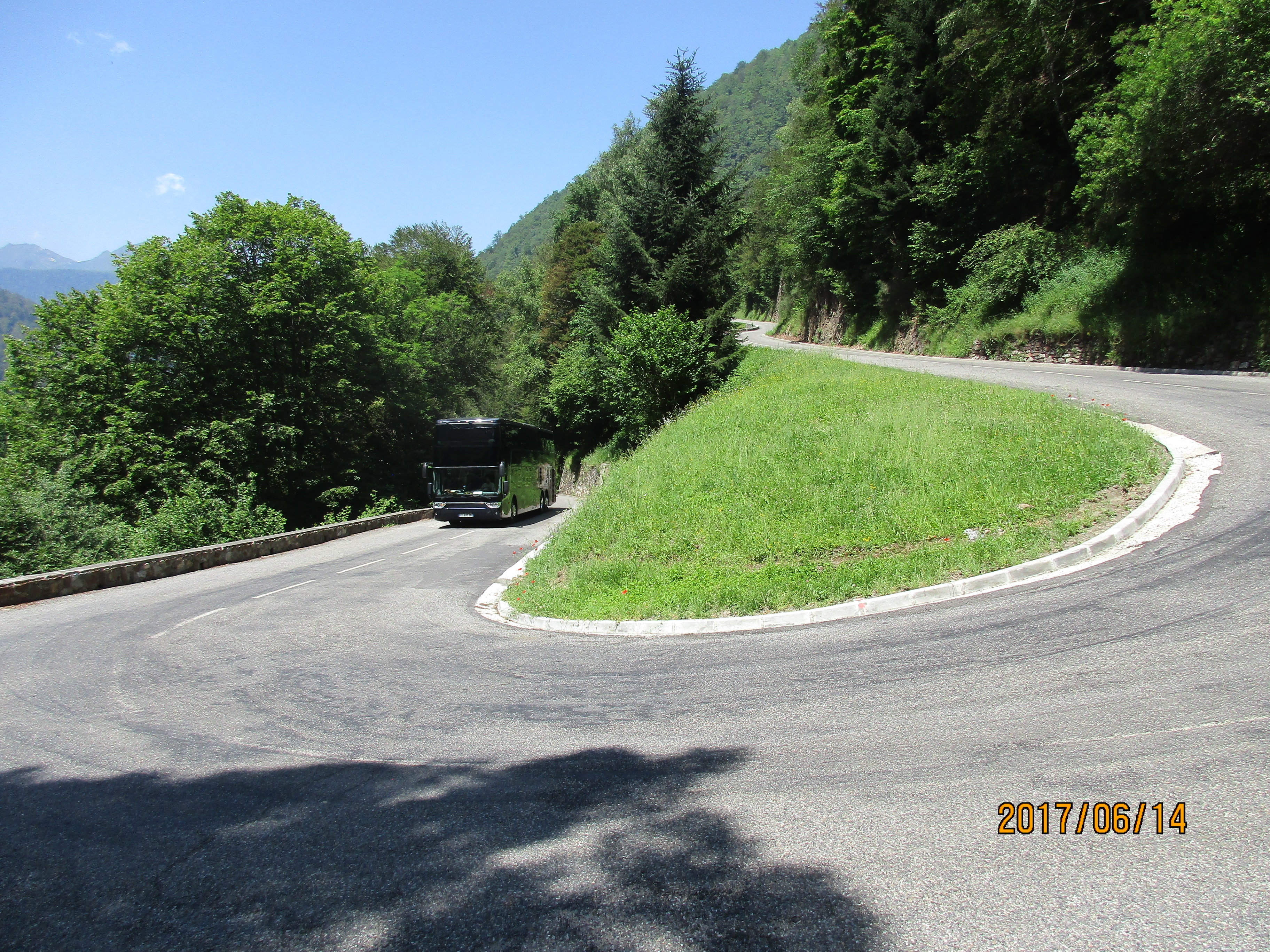Start at the south end of Luchon, at the intersection where the D618-A turns left and heads to Spain and the Col du Portillon, and the D125 heads up to Superbagnères. At km 4.4 turn right following the signs (going left takes you to the Hospice de France, which I assumed was a beautiful place for terminally ill people, but no, it’s just a hotel and restaurant.) You now see a sign indicating the start of the climb to Superbagnères. What? I’ve just climbed 4.4 km, admittedly some of it relatively flat, but still.