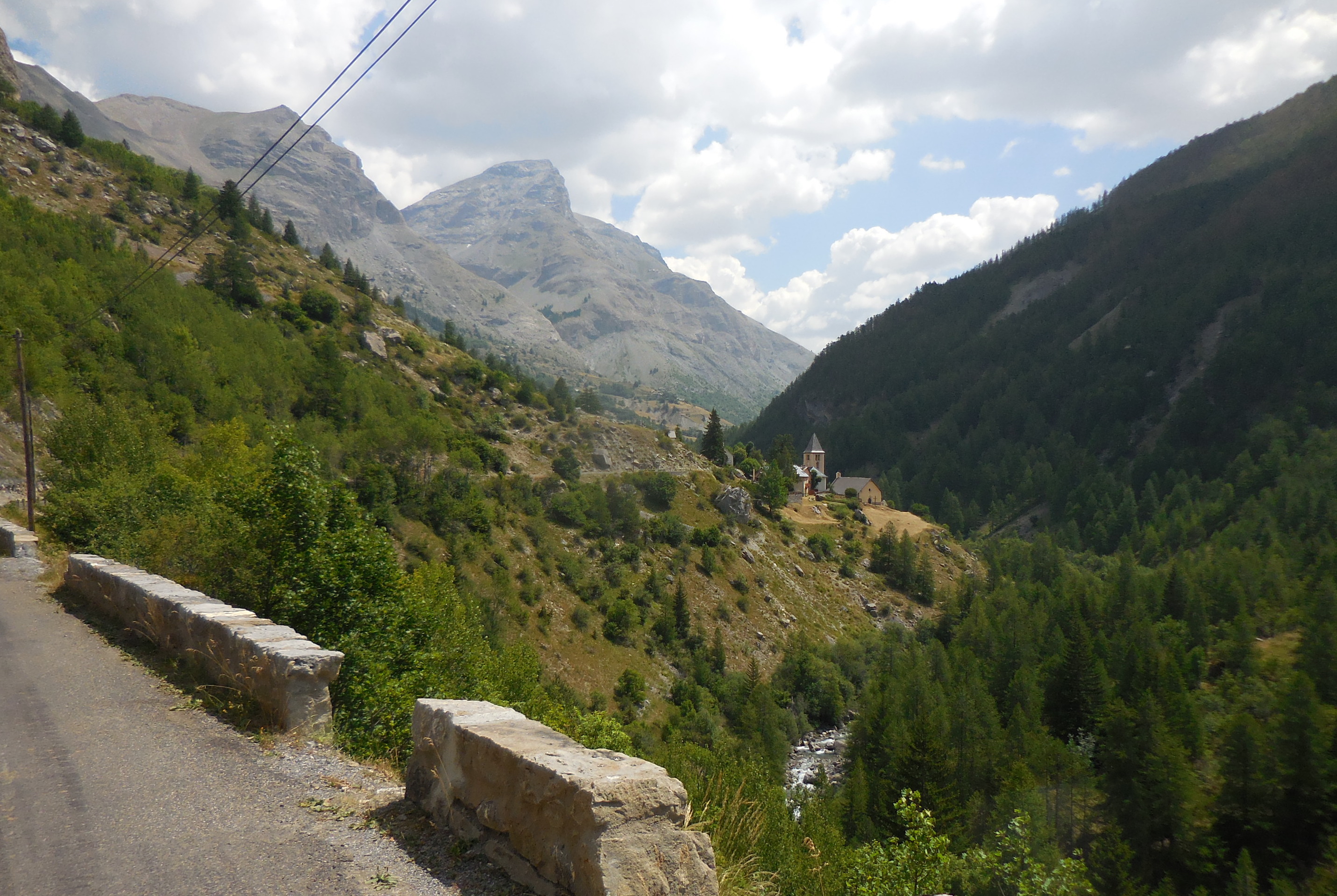 About 27 km and 1,184 meters (3,885′) of climbing. A rather tedious climb that initially parallels the Col d’Allos road southward but in the valley below, then heads east for a while then south. While it has its nice moments with good views, I found it far less interesting and enjoyable than most of the other climbs, as it mainly follows a rather uninteresting valley.
