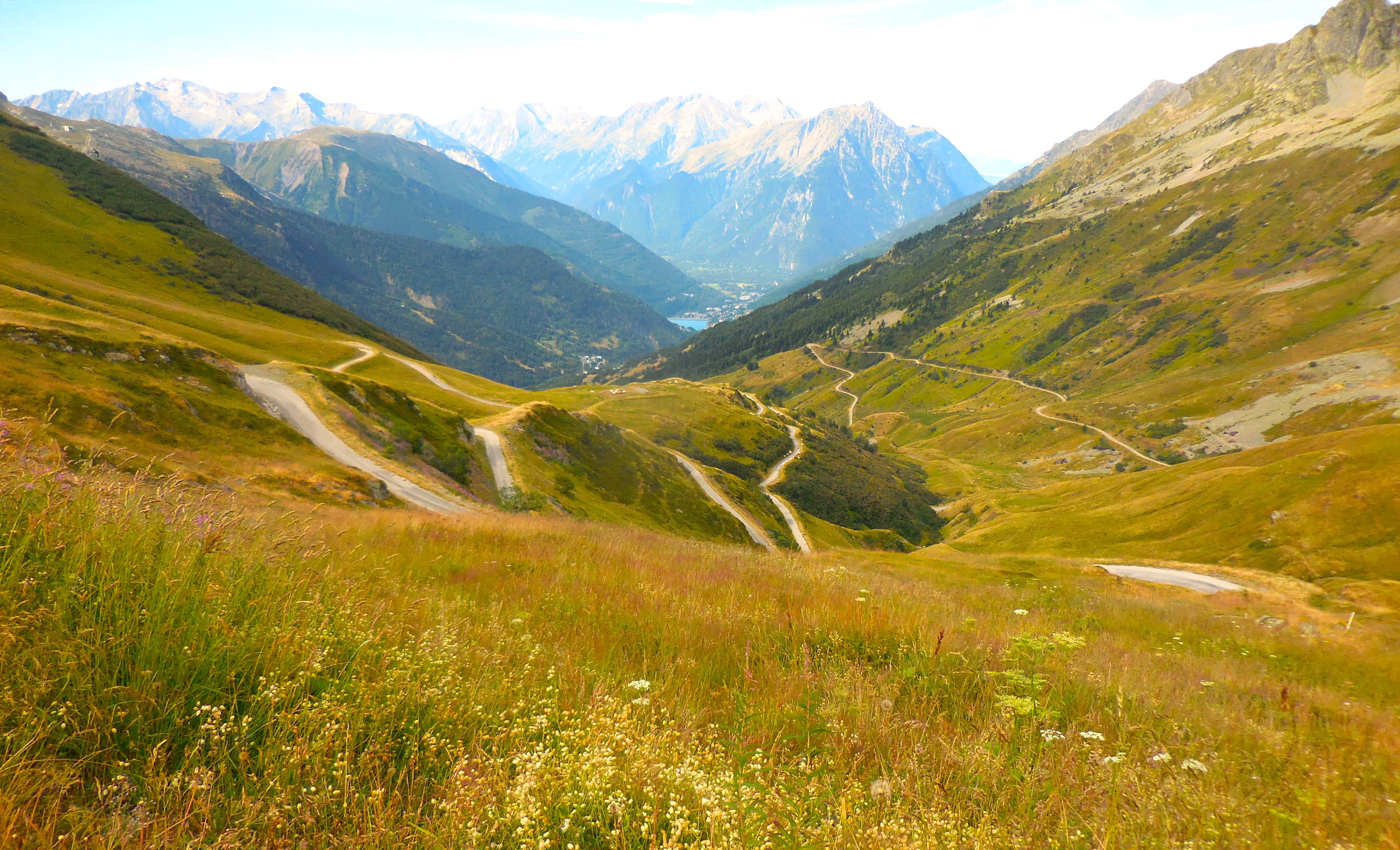 13 km, 1,072 meters of climbing. The icon of icons – the most famous climb in the world. 21 switchbacks, steep from the gun, and beautiful views of the road above as you get higher. If you are in the area you have to ride it. The natural place to stop is in the town of Alpe d’Huez, with all the stores, bars, and restaurants. The official climb goes on for maybe another 1.4 km, following signs for Itineraire de Tour de France, and finishes at a rather nondescript sign. Enough said.