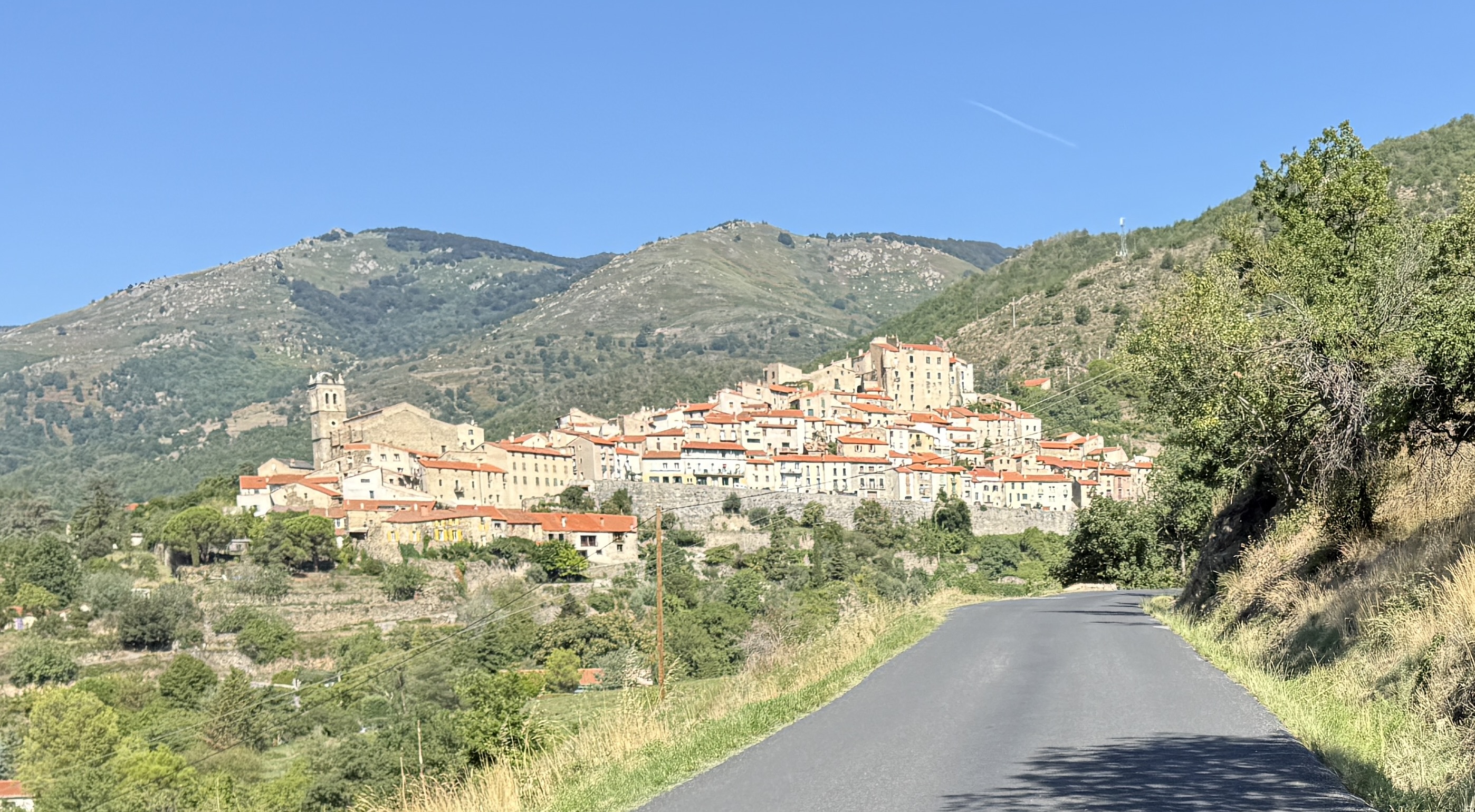 Climbing back from Prades, parallel the river for a bit under 2 km then follow the D619 then D14 for about 23 km up to the Col de Jau. On the way you’ll ride through Les Thermes, riding across several sections of cobblestones, then you’ll go through the village of Mosset. This side of the Col de Jau is vastly more enjoyable than the Axat side. The riding is rarely above the 7% gradient range.