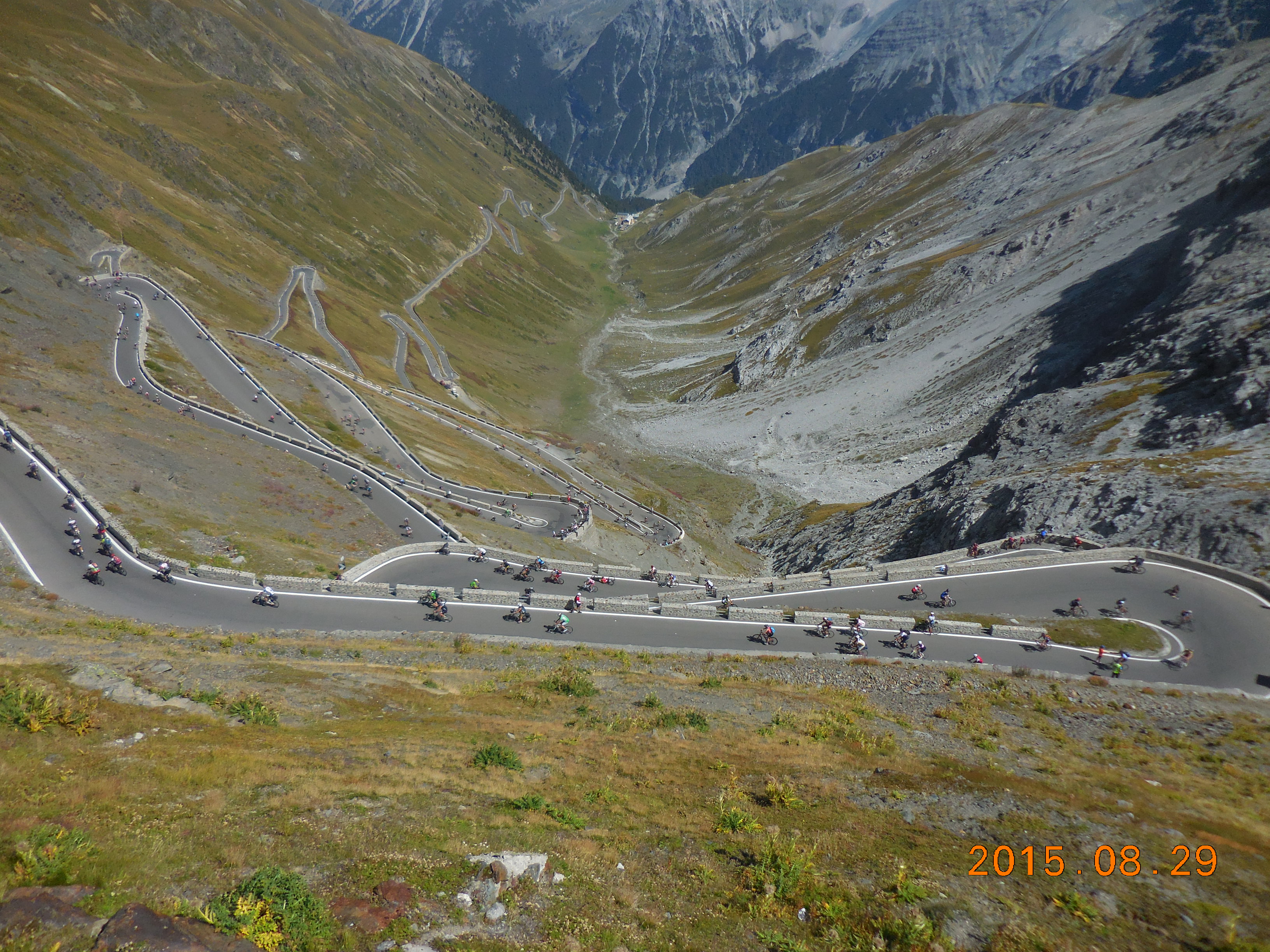 I rode the Stelvio on Stelvio Bike Day. Apparently 12,100 people rode the Stelvio that day, 9,550 from the north and 2,550 from the south.