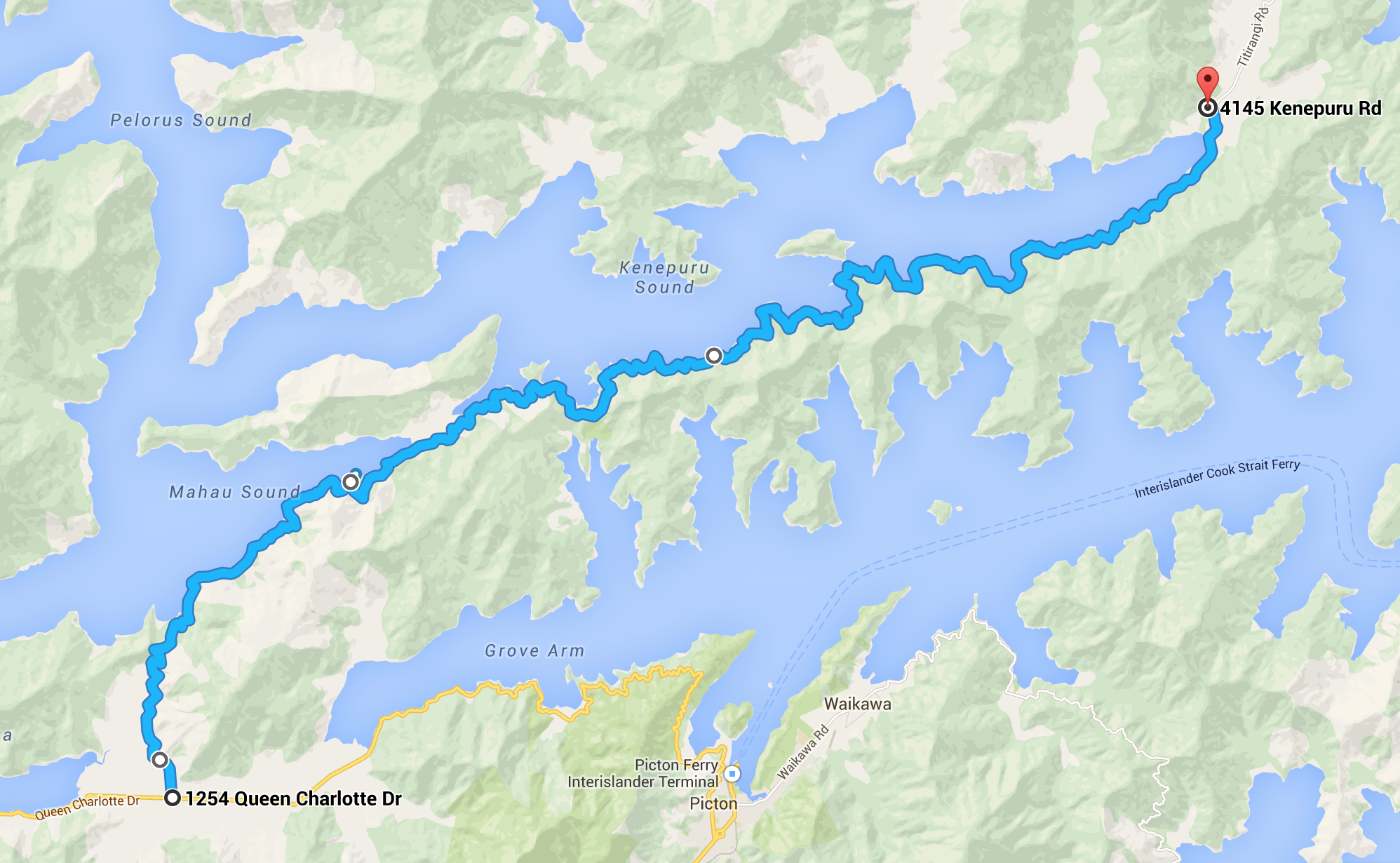 We parked at the side of the road a few hundred meters after the turnoff towards Picton. The ride from Havelock to Picton and back is 66 km (41 miles) with about 900 meters (2,953 feet) of climbing.