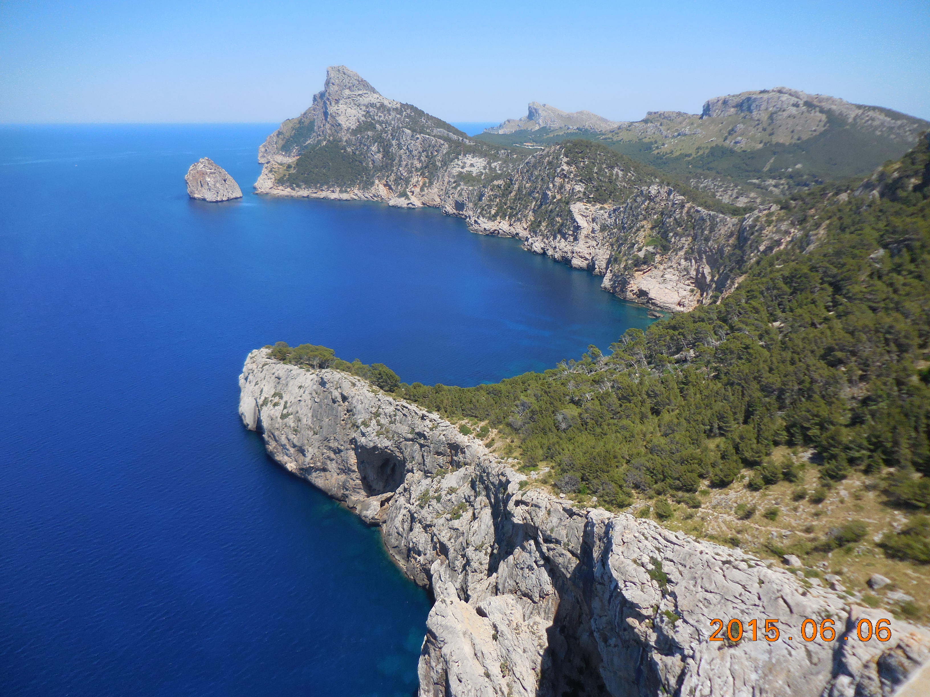 Start somewhere (Pollença, Port de Pollença), and ride out to the start of the road to Formentor and Cap de Formentor. The first – and hardest – climb, is about 3.5 km. It finishes at a parking area with a strange stone statue dedicated to Antonio Parietti, the creator of this road and the road to Sa Calobra. From the parking lot you can walk out and up steps to a viewing area with absolutely beautiful views of sea and cliffs.
