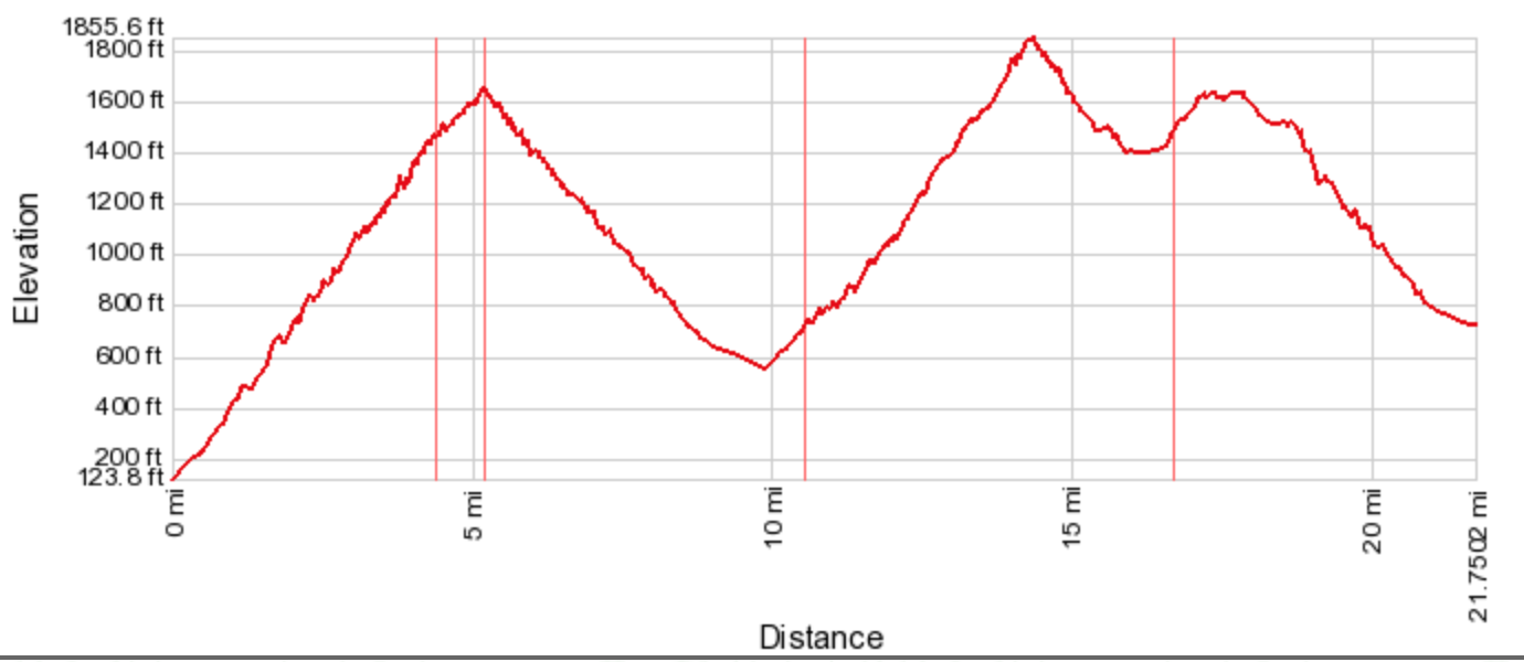 A must-do ride. Not particularly hard – only about 35 km out and back from the roundabout just before the first climb, with 846 meters (2,775 feet) of climbing – but with spectacular scenery, especially if you stop at the overlooks.