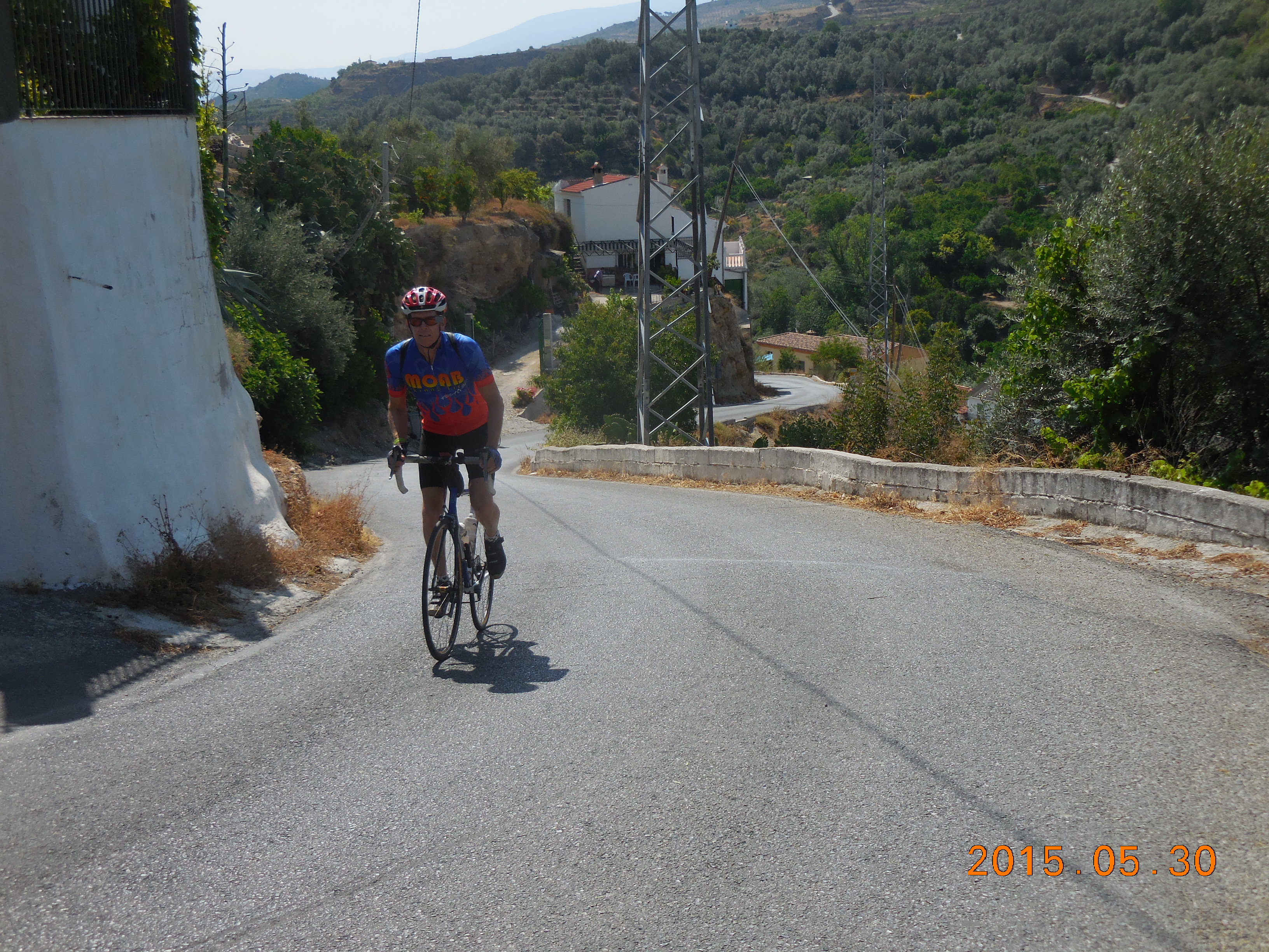 It’s a lovely long climb (with a few descents), starting in Órgiva and ending in Trevélez, passing through many small white villages on the way. These white village are a feature of the Alpujarra region of Andalucía. There are many sections of consistent 6-7 percent gradient, with a few short pitches of 8-10 percent.