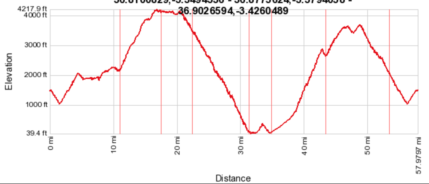 Órgiva – Torvizcón – Haza del Lino – Polopos – Castell de Ferro – Rubite – Órgiva. This ride is about 93 km with 2,630 meters (8,629 feet) of climbing.