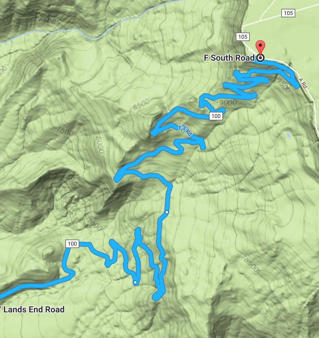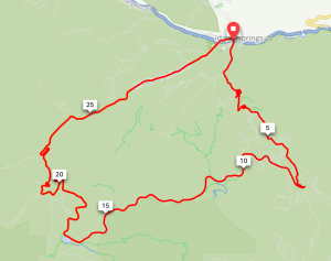 I wanted to ride Little Bear Creek Road as it’s an uphill gravel road for almost 7 miles, but it wasn’t that much fun as the views weren’t great and it was an overcast day. Rather than simply descend the same way I decided to make a loop out of it. So it’s about a 30 mile loop with 3,450 feet of climbing. Most of the loop is on paved road and Little Bear Creek Road is flat and hard-packed enough that you could ride it on a road bike. Even though it’s in the gravel page, it’s probably a better road bike ride. So, here goes.