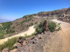 From the South (S-1) the usual start of the climb is in Cedaredge. From here it’s 20.7 miles with 4,652 feet of climbing. The climb starts fairly easily and eventually steepens a bit and is consistent but never very steep. Finish at a loop parking area at the top.