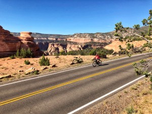 If you are in Grand Junction, the obvious close-in ride is the Colorado National Monument. This is a fantastic ride with gorgeous views and can be ridden from either end, starting in either Grand Junction or Fruita, and is about 23 miles from Entrance Station to Entrance Station. The Park Service requires bicycles to have lights for the tunnels. The ride is sometimes called the Tour of the Moon.