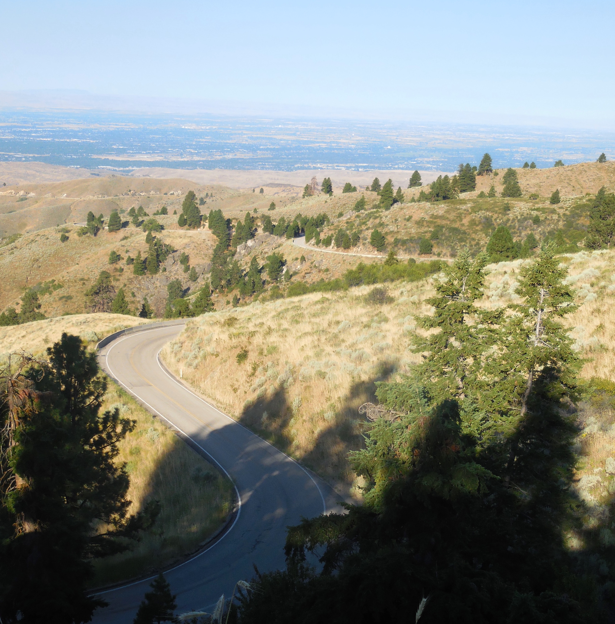 A lovely and popular climb out of Boise, it twists and turns its way uphill for about 15 miles with 3,226 feet of climbing. To start, drive up Bogus Basin Road past an unusual manicured hill on the left. At the stop sign, turn right on W. Curling Drive and park.