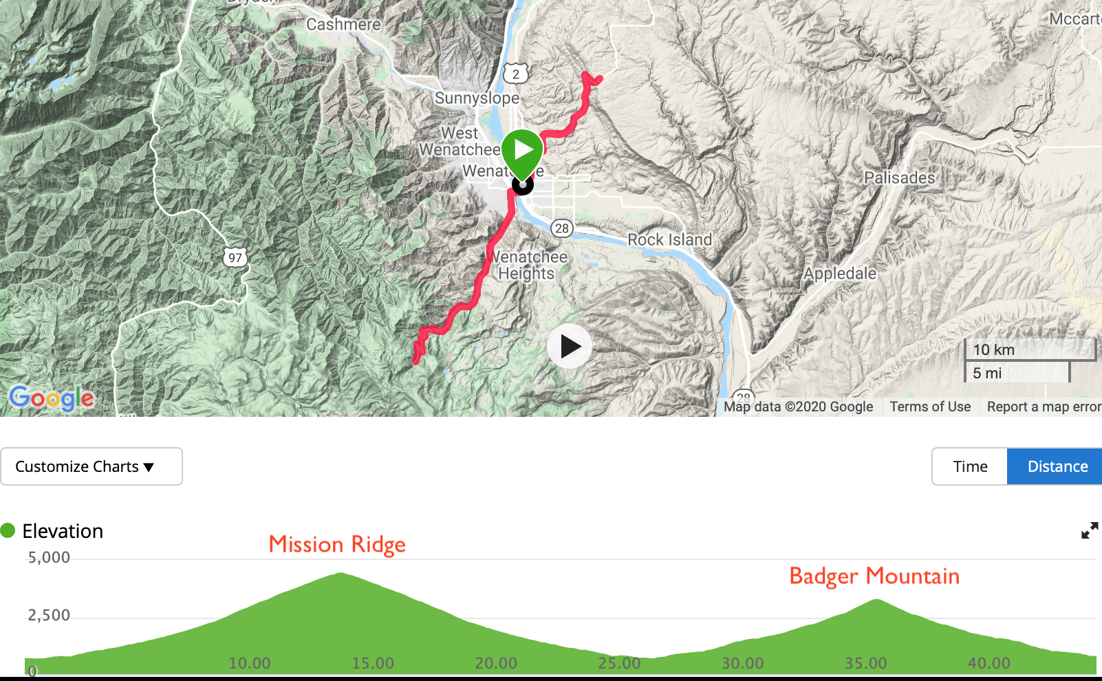We were staying near Plain, so I drove to Wenatchee for the day to ride Mission Ridge and Badger Mountain, both tough climbs that Summerson rates at Category 1 climbs.