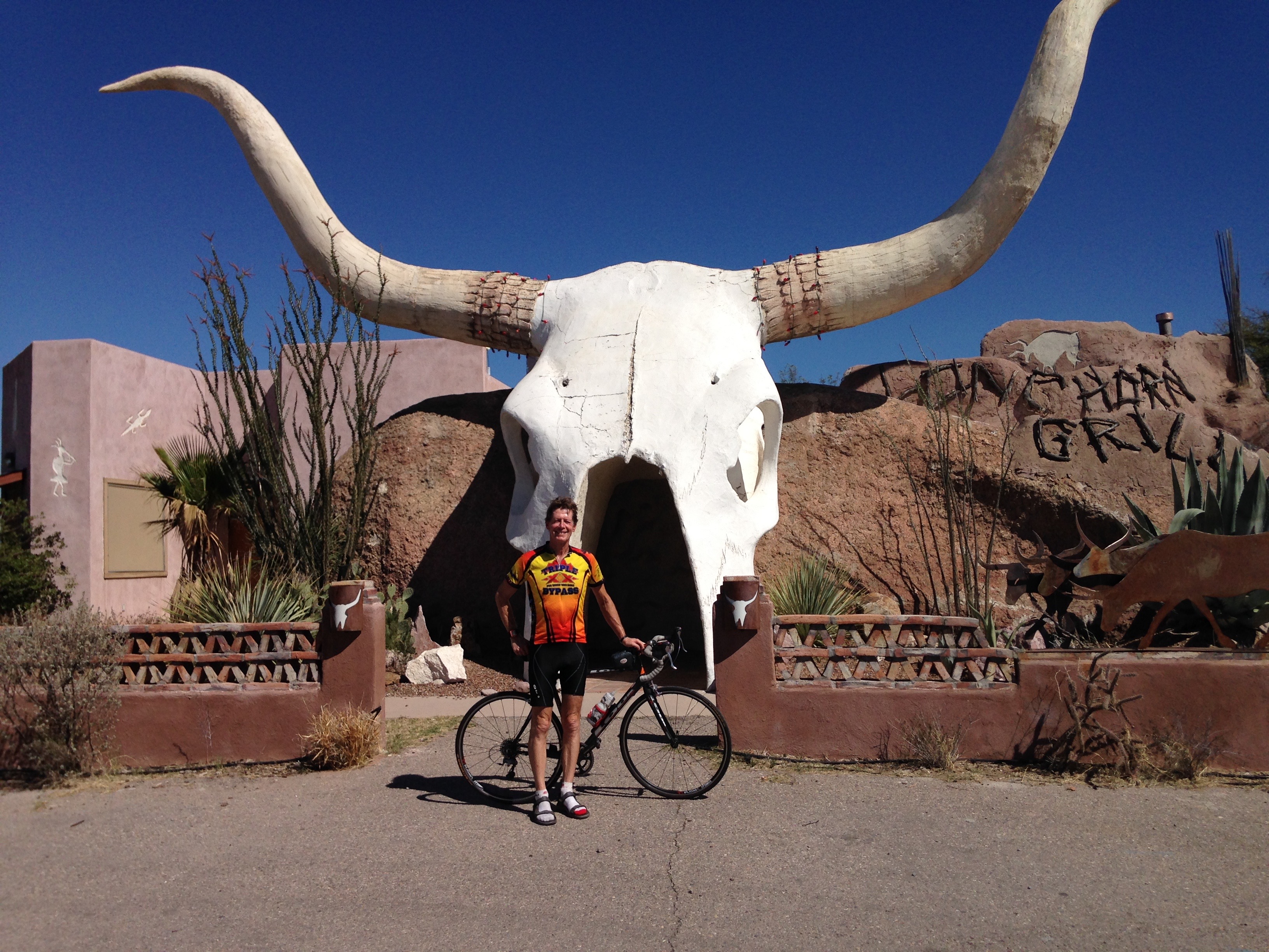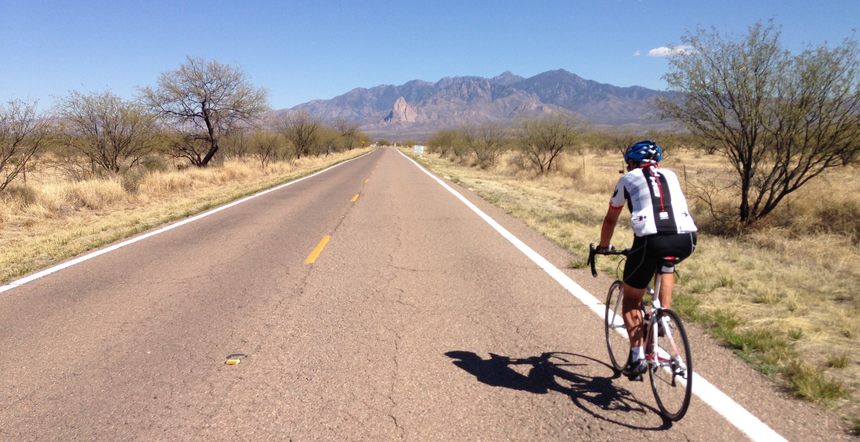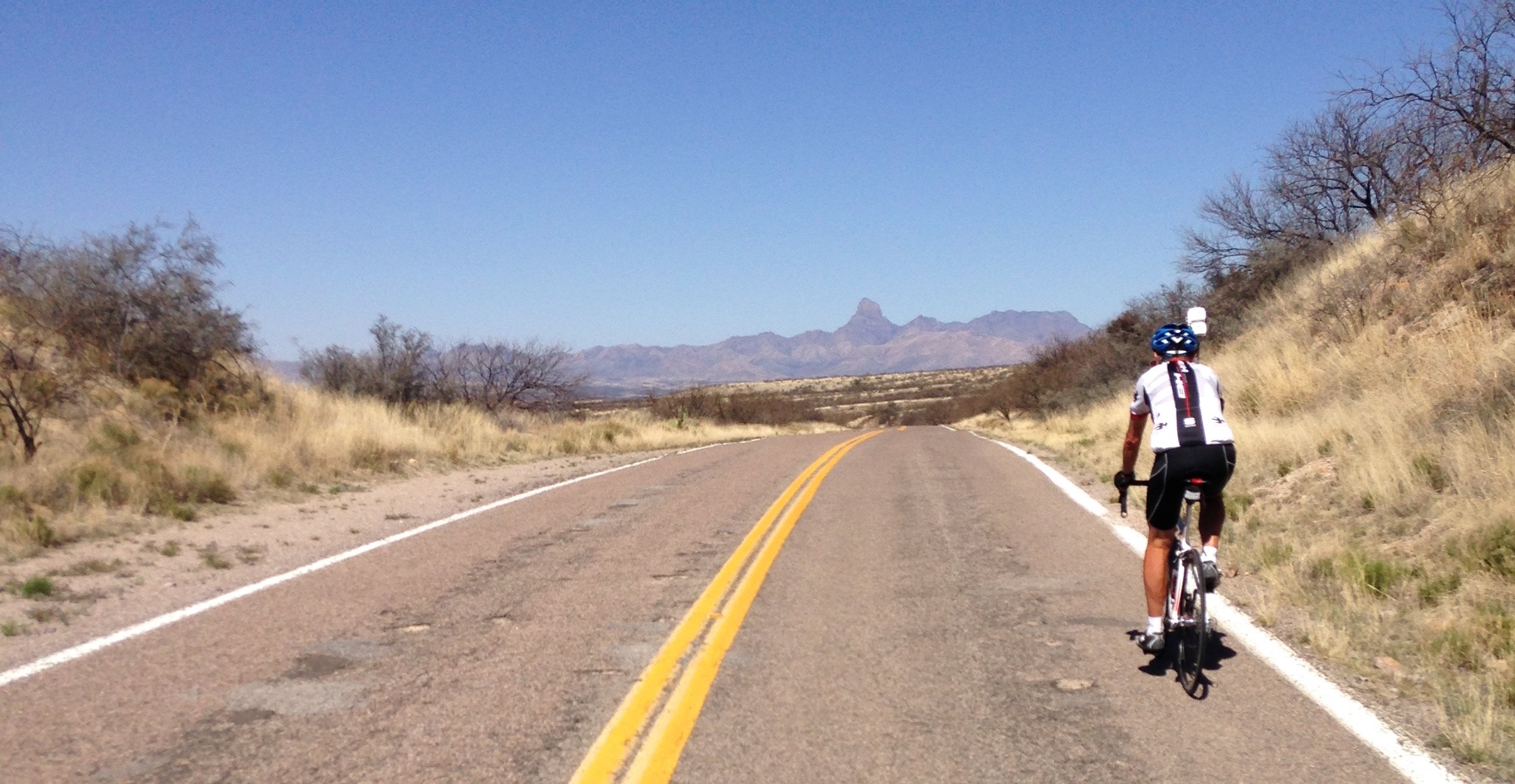 Turn round here and ride back the way you came. You’ll be surprised at how much climbing you have to do to reach Arivaca again. Climb out of Arivaca and follow the road as it rolls downhill to I-19. The last few miles have wonderful views of rocky Elephant Head. Behind this and to the right you can see the observatory at the top of Mt. Hopkins.