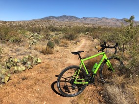 The area feels wonderfully open, and the riding is neither steep nor technical. It’s just lots of singletrack that winds back and forth, with gradual climbs and descents. Sometimes you are riding through beautiful ocatillo country, sometimes you don’t even notice the cactus, and sometimes you ride through prickly pear terrain, where you definitely notice the cactus.