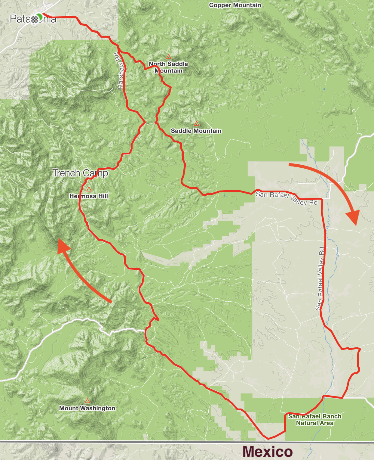 Update: November 2024. We rode the loop clockwise, but instead of starting in Patagonia, we started where Canelo Pass Road leaves Hwy 83, by the mailboxes (location 31.542523356662542, -110.52951463081351). Ride about 4 miles up to Canelo Pass then another 5 miles down to join the main loop in the San Rafael valley. Ride the loop (we did it clockwise), then back over Canelo Pass. I liked this start better than the Patagonia start because there is much less paved road riding. It’s also slightly longer with a bit more climbing (53 miles and 3,600 feet of climbing). The disadvantage is that there’s not much parking at the base of Canelo Pass Road. Here’s a link to the ride on Ride with GPS.