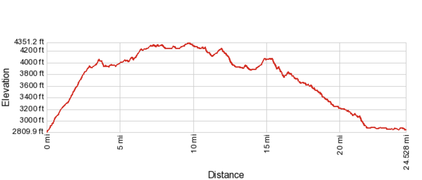 I lost my Garmin 500 on this ride so had to find the elevation gained using Google Maps, according to which there is about 3,760 feet of climbing on the dirt road.