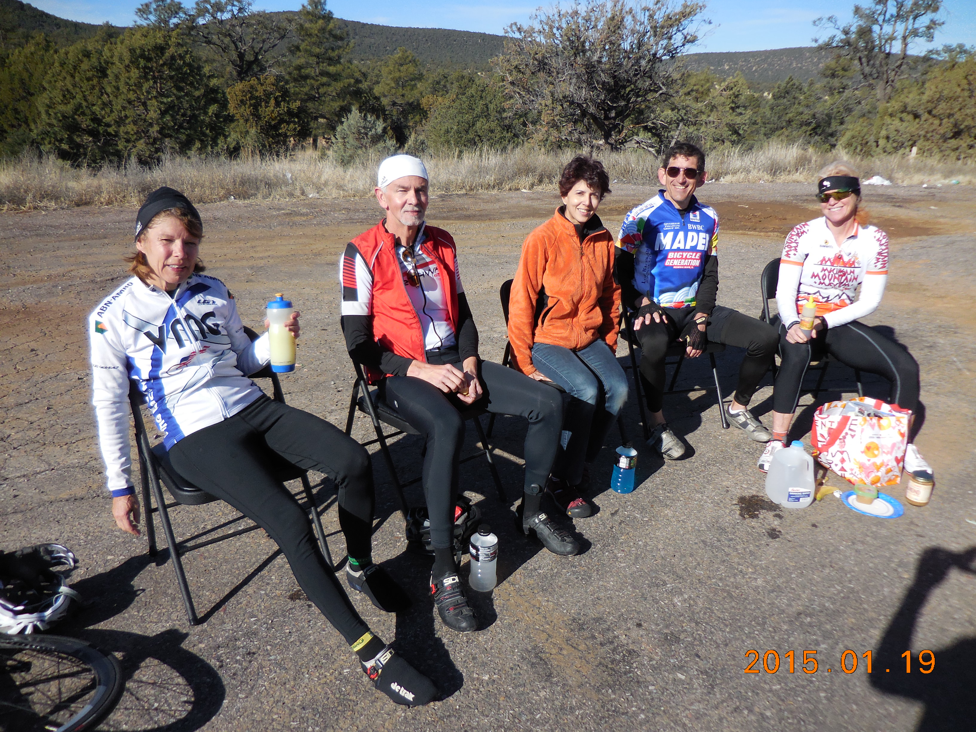 The rest stop at the bottom of the canyon, where people took off their cold weather tights, jackets, and arm warmers in preparation for the climb out of the canyon.