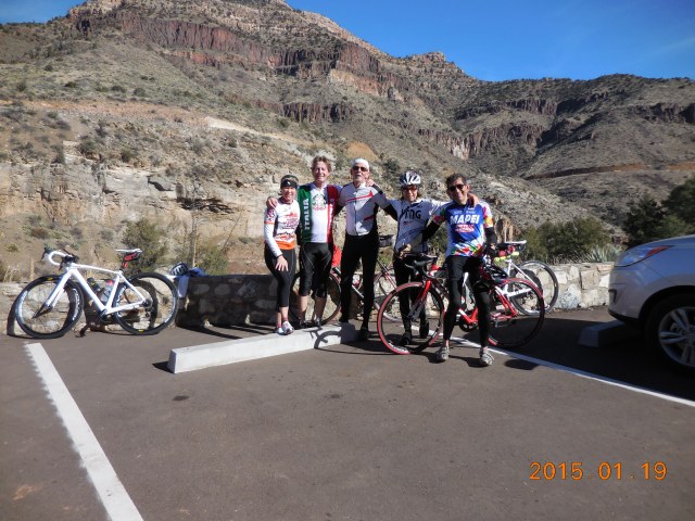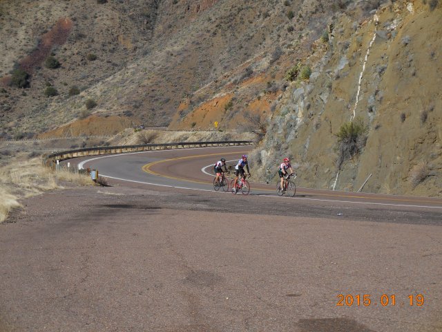 The Salt River Canyon Century is perhaps the best century ride in the Tucson area. It has lots of fantastic climbing, the highlight being climbing both ways out of the spectacular Salt River Canyon. We rode the Century on January 19, 2015.