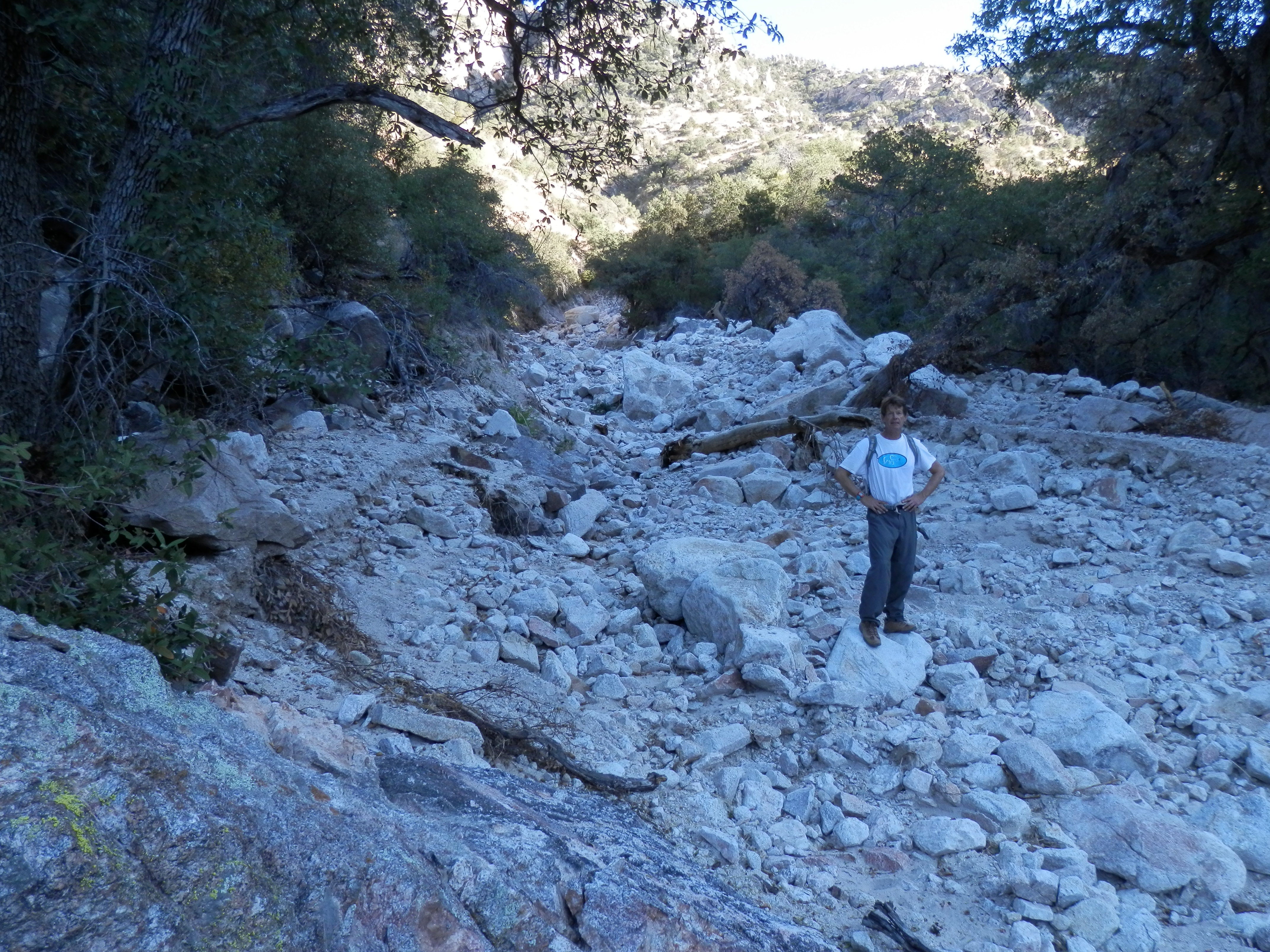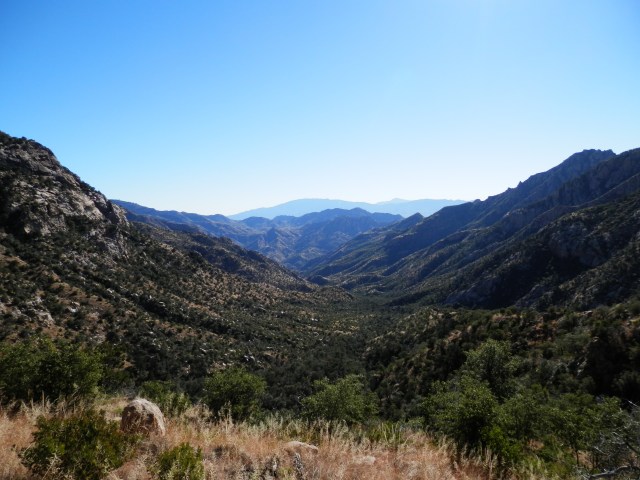 After the Sabino Canyon turnoff, the trail continues up East Fork, climbing again for 2 miles until you reach the crest and a trail branches right to Bear Canyon.