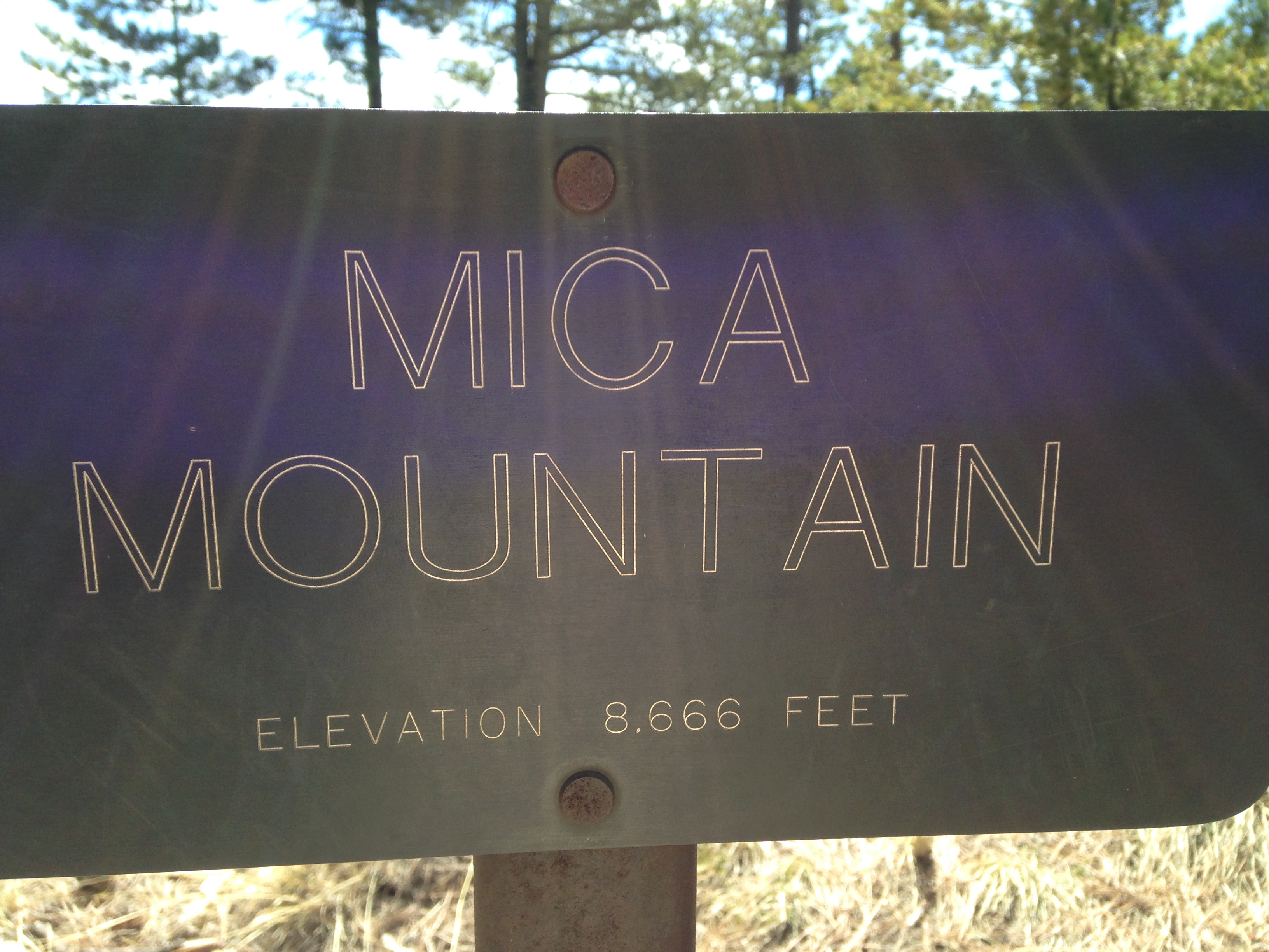 At the top there are no views, just a concrete slab and a sign saying “Mica Mountain”. (This photo, taken with my phone, is the only photo I have of the hike as I lost my camera on the way down.)