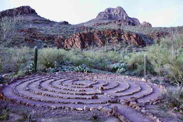 After climbing Panther Peak, I dropped back into the saddle between the two peaks and headed down to the north, then contoured back eastwards to Sanctuary Cove. Back at the cove I came across a lovely little labyrinth that I walked around.