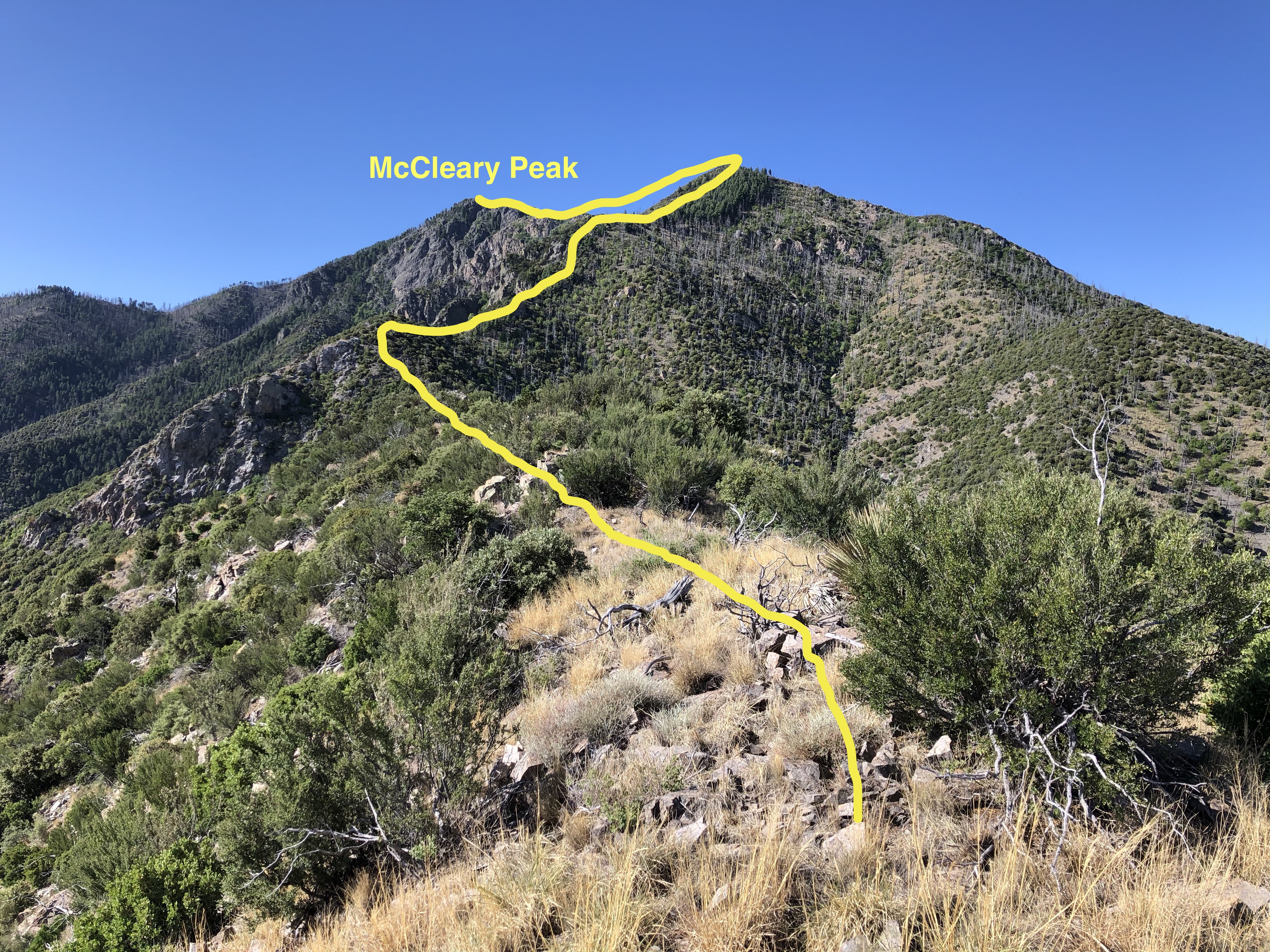 This hike/scramble/fight climbs the north ridge of McCleary Peak. This is the ridge just to the west (right) of Florida Canyon. If there was a trail up it, it would be one of the best hikes around. But, back to reality: it is steep, rocky, endless, and has few redeeming qualities. You will be climbing up steep, loose terrain, and fighting your way through trees and thickets of bushes, and wondering why you decided to climb this ridge. To avoid all this, don’t climb it. Do something more fun.